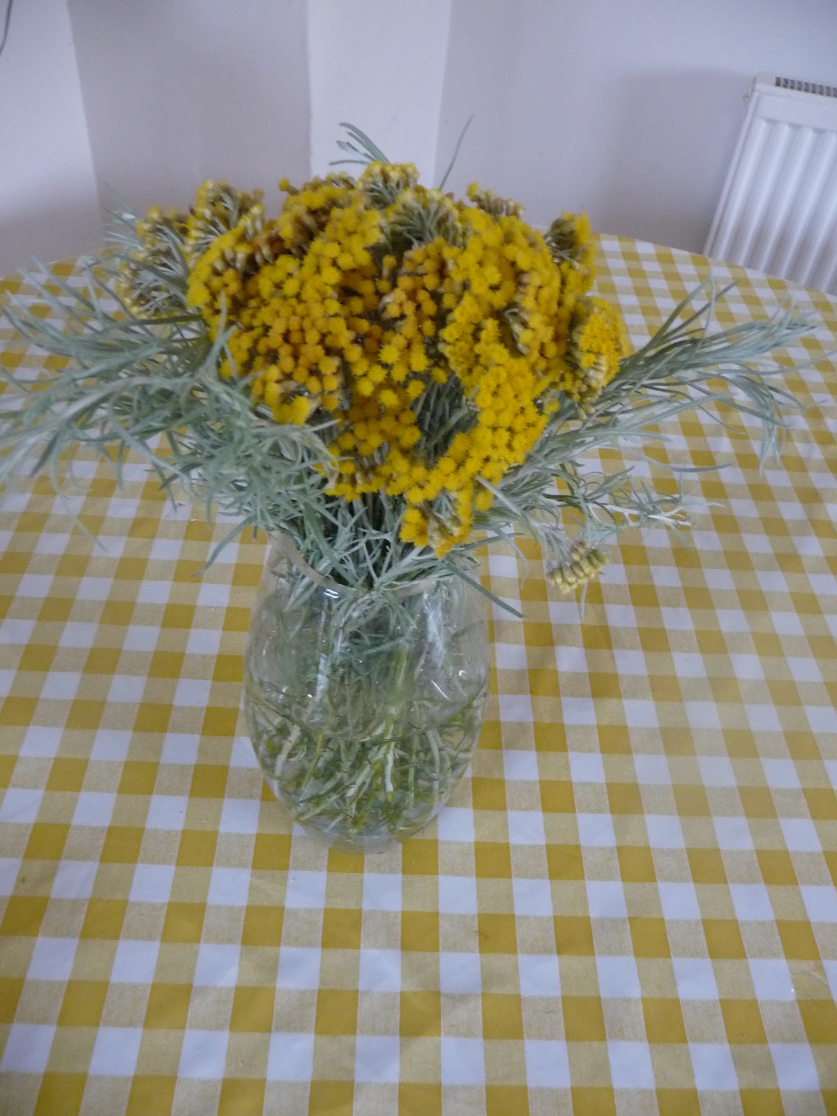 Silver leaves, yellow flowers – why put them on the compost heap when you can display them in a vase? This was the result.