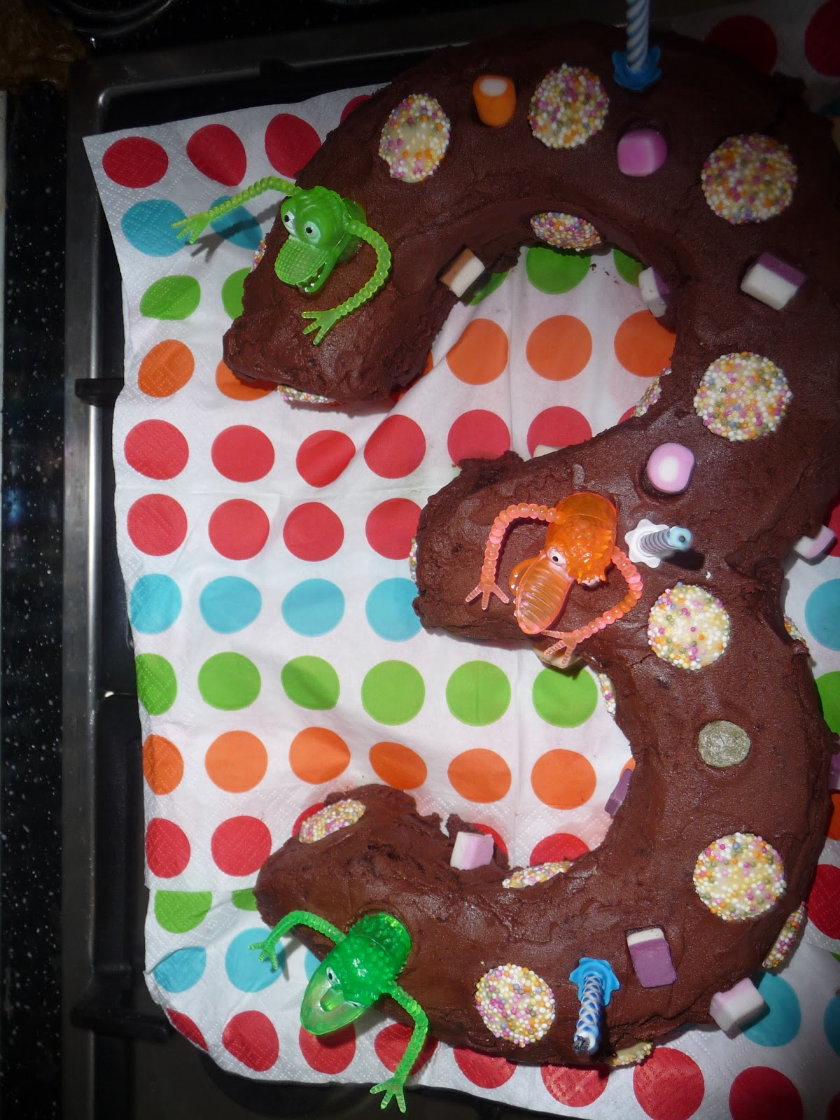 The last time I made this cake recipe for my son’s birthday I got the icing all wrong and actually admitted defeat and went out and bought a cake from the supermarket! It cost me £10, wasn’t anything that special and definitely wasn’t full of carefully chosen organic ingredients. The problem was although I made the cake in advance I found icing and decorating the cake last minute far too stressful, so I have asked (i.e. told) my mum who is an expert at decorating cakes, to be the official cake decorator in future for my children’s birthday parties – at least until I have had a bit more practice with icing and decorating!