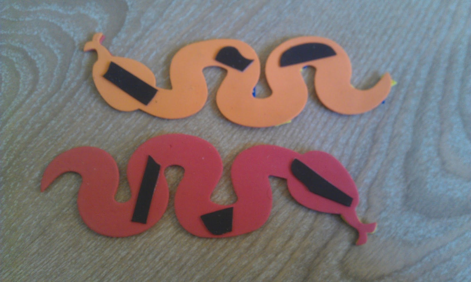 They gave the kids some snakes to decorate, including some foam type ones, with sticky bits to decorate them with. I was mentally tutting to myself, thinking that the craft wasn’t particularly eco-friendly as they came in plastic wrapping and I wasn’t sure what to do with them once we have finished with them.