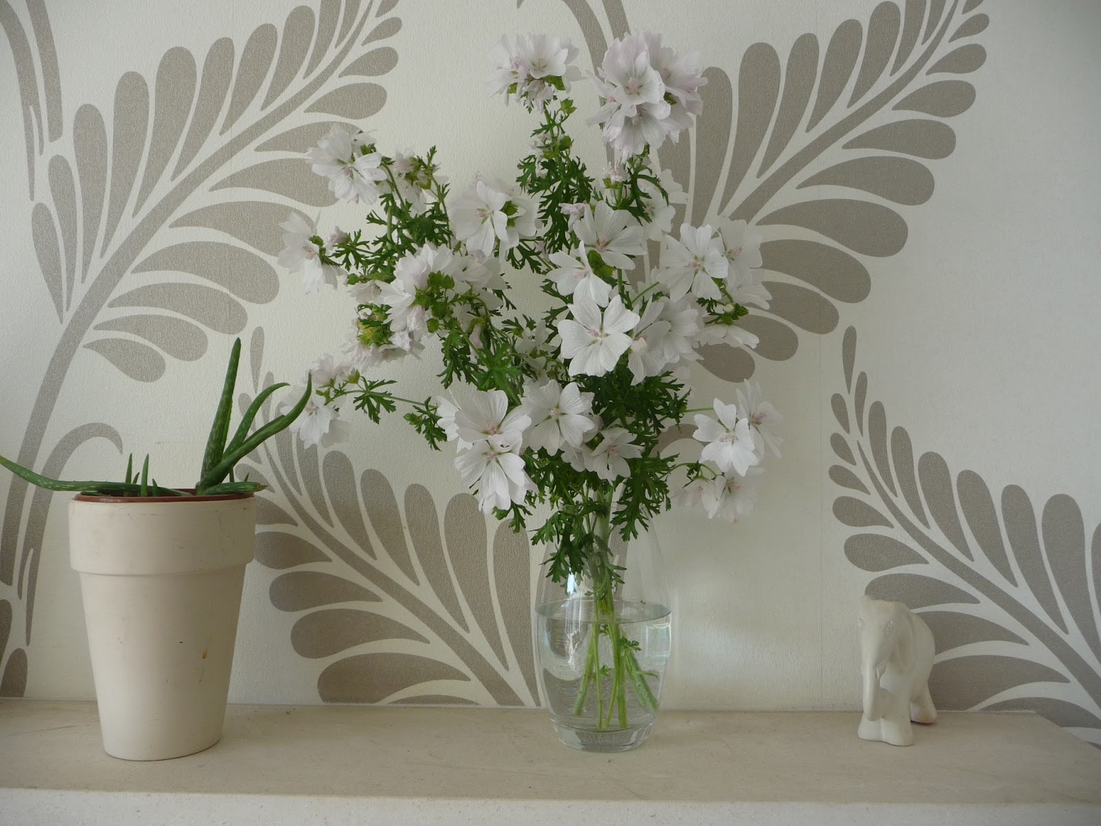 Just over a week ago my husband picked some and I displayed them in this vase. They lasted about a week indoors which is pretty good going… The ones left outside are just going past their best now, so I have decided not to bring any more indoors. However there was a weed that had been trampled on near our recycling bins, which seemed to be doing pretty well considering the attempts to squash it, so I decided to cut it and display it in a vase! I think it looks really pretty!