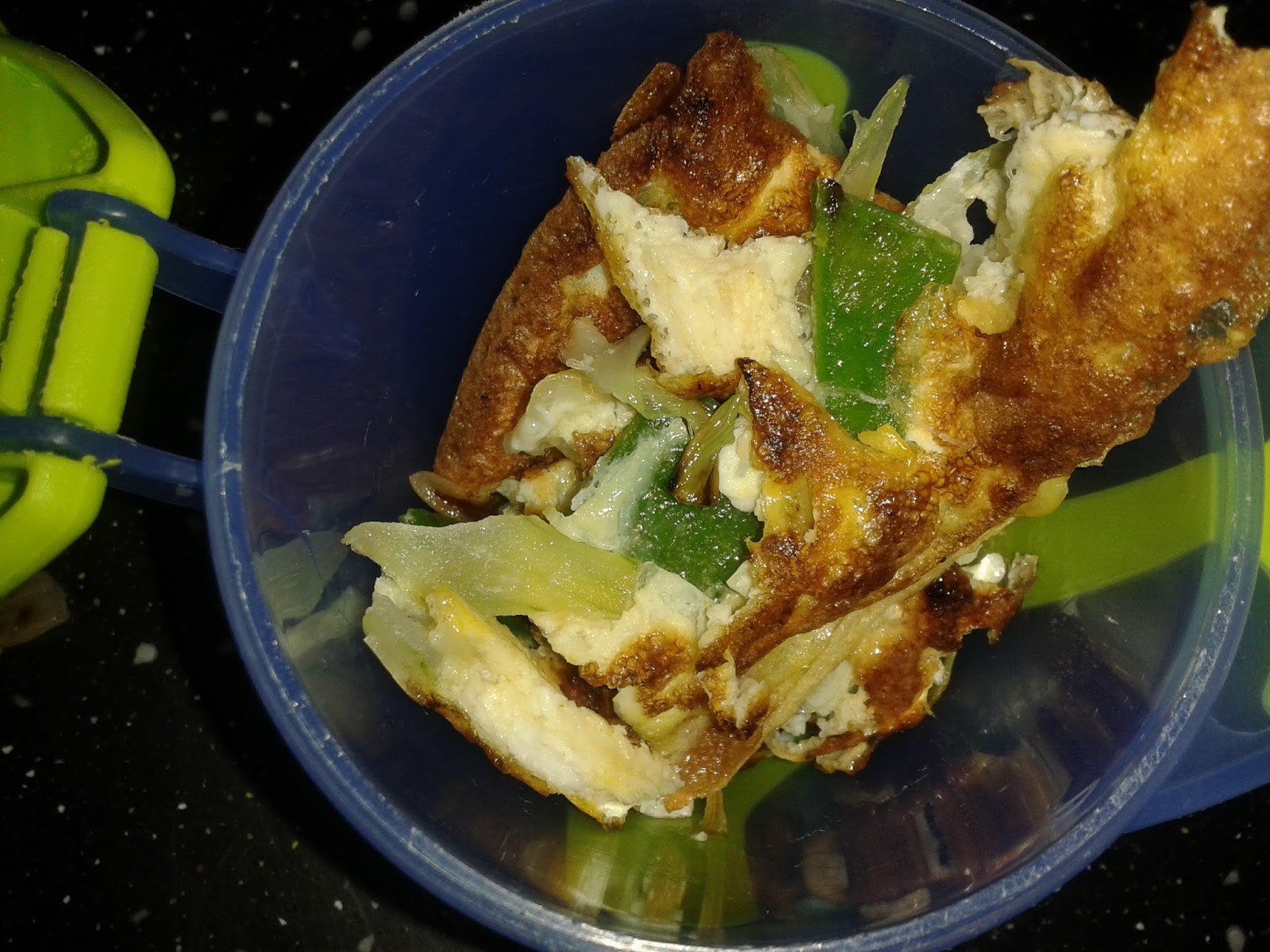 There was a little leftover omlette from dinner, but I put it in a pot in the fridge to eat today.