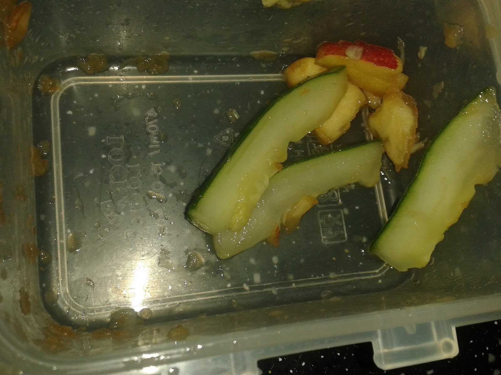 I’m keeping a food waste diary in preparation for Zero Waste Week. Yesterday we had less food waste than the day before. There was still some though and this is it in pictures: