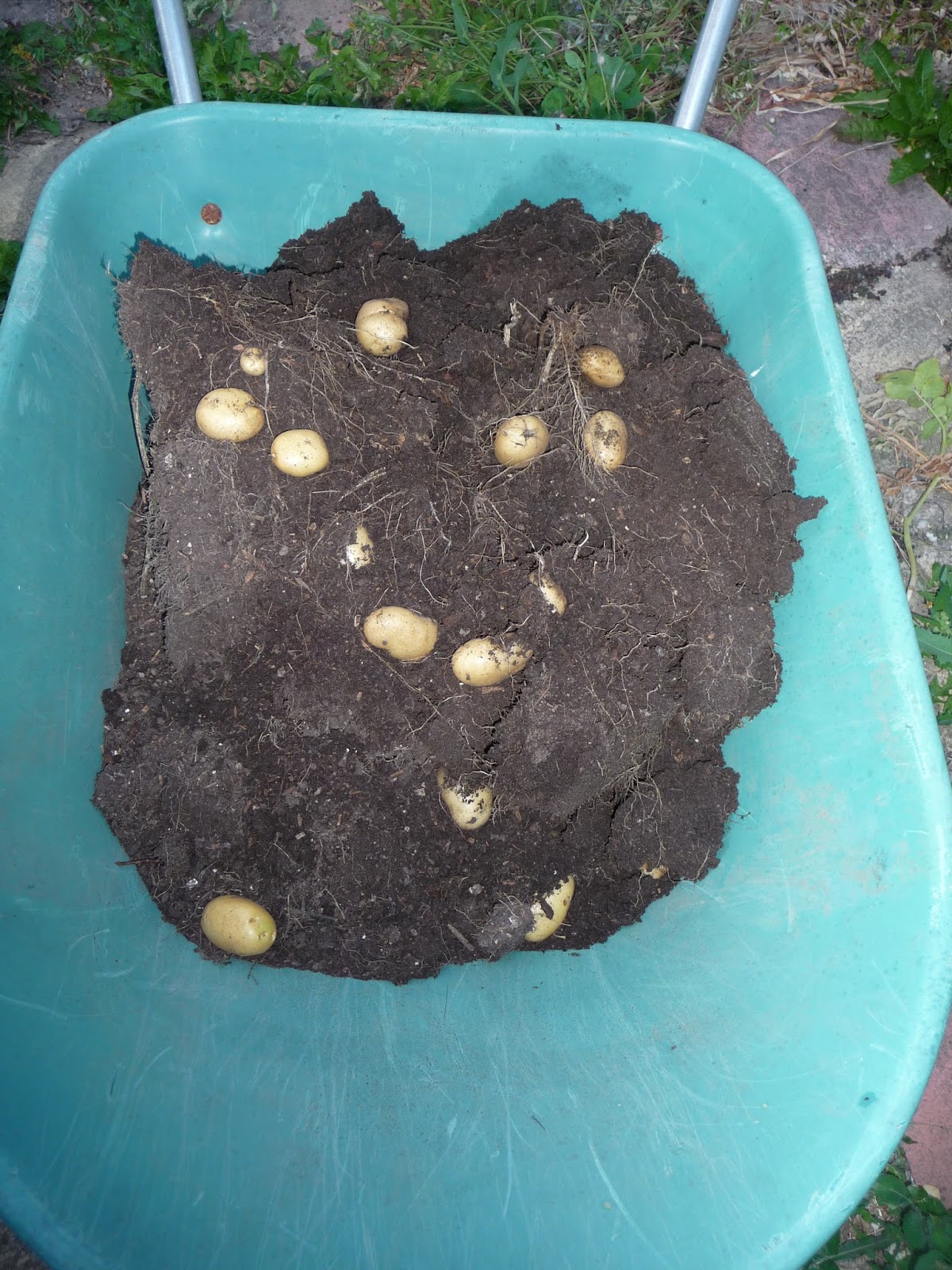 We poured the contents into our wheelbarrow and had great fun searching around in the soil for the potatoes. My hubby saved the soil from the potatoes to reuse on something else bearing in mind the advice in this article about reusing potato soil.