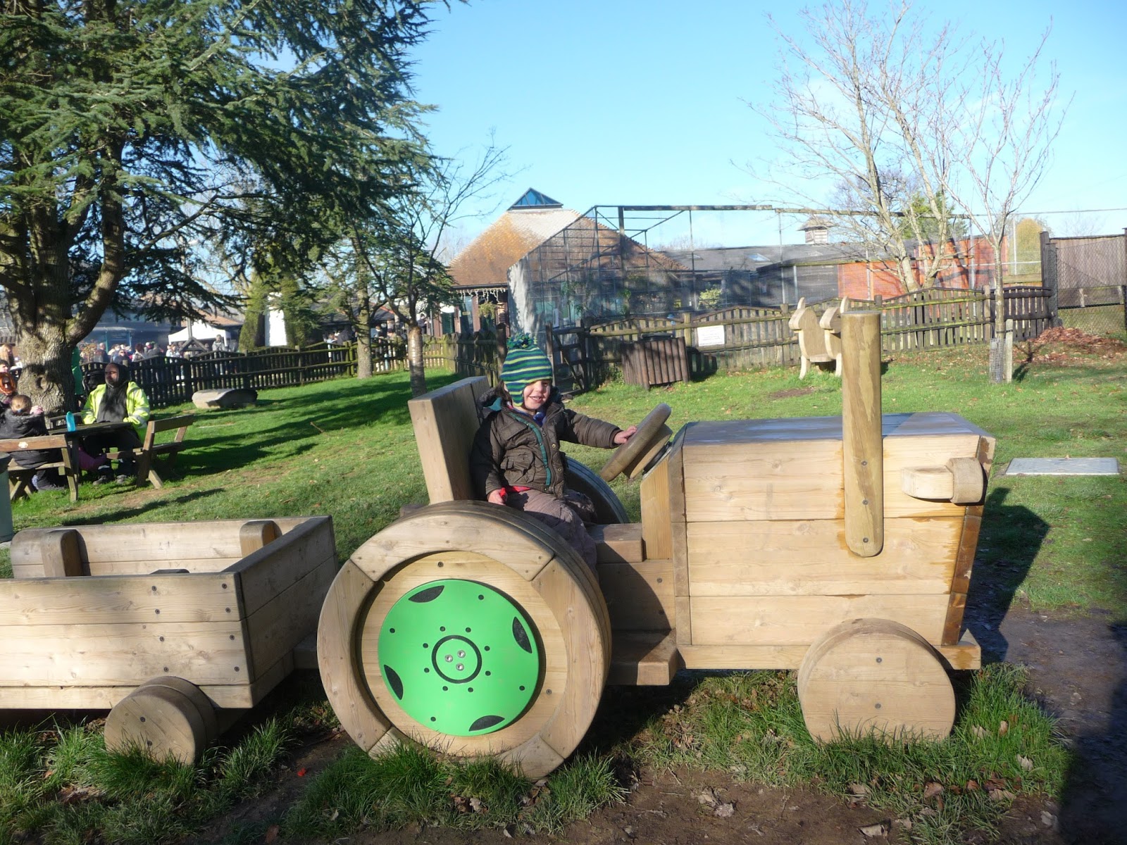 - Raystede – this is an animal welfare centre. It is free to enter, although they do ask for a donation. There is a cafe and outside picnic benches with a play tractor which we make use of all year round (as pictured above). There are all kinds of animals there from hamsters to horses – it is a great day out! Watch out for the parrots that can say hello and look out for their summer and Christmas fairs when there are all kinds of things going on.
