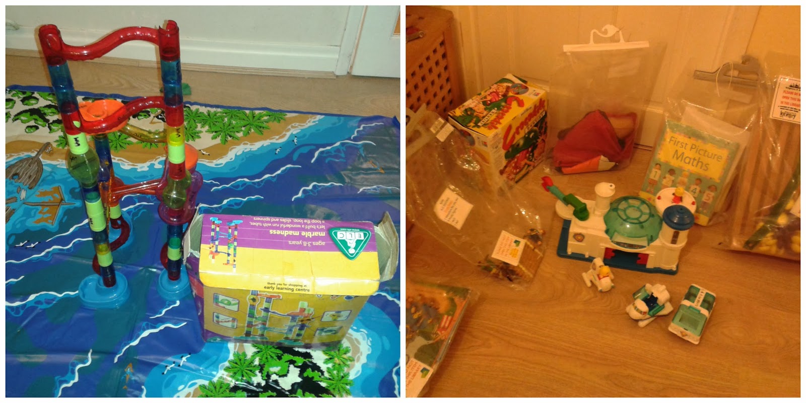 My kids are 3 and 5 and there were plenty of toys which were suitable for both of them there. The story bags in particular are brilliant. They include a story or two and a sheet with jokes or poems and so on related to the stories. Plus most bags include some kind of relevant toy, possibly a dressing up costume and maybe a game. They are all different but really good. Today we got ones out related to knights and maths.