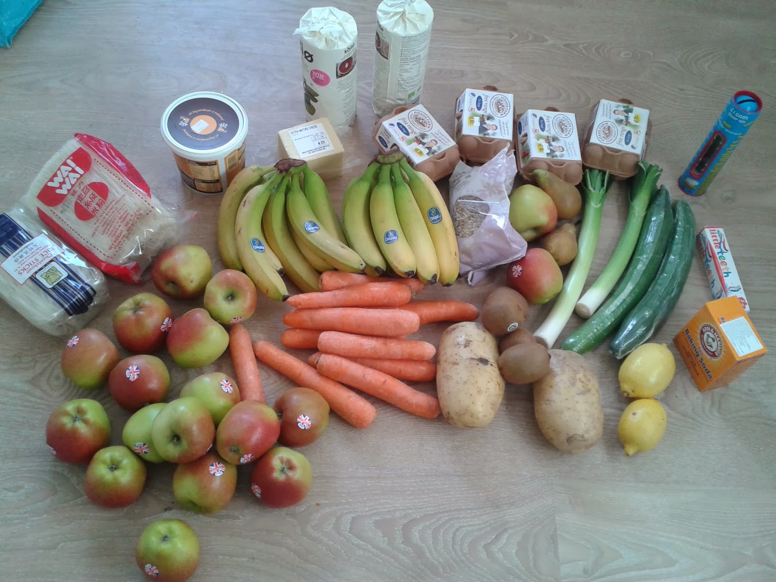 here. They didn’t look like the picture at all and actually came in a paper bag in a cardboard box – hooray no plastic! Well very little anyway – there was the parcel label and masking tape – but one step at a time… In total I spent around £38 mid week. The porridge oats should last a good few months though.