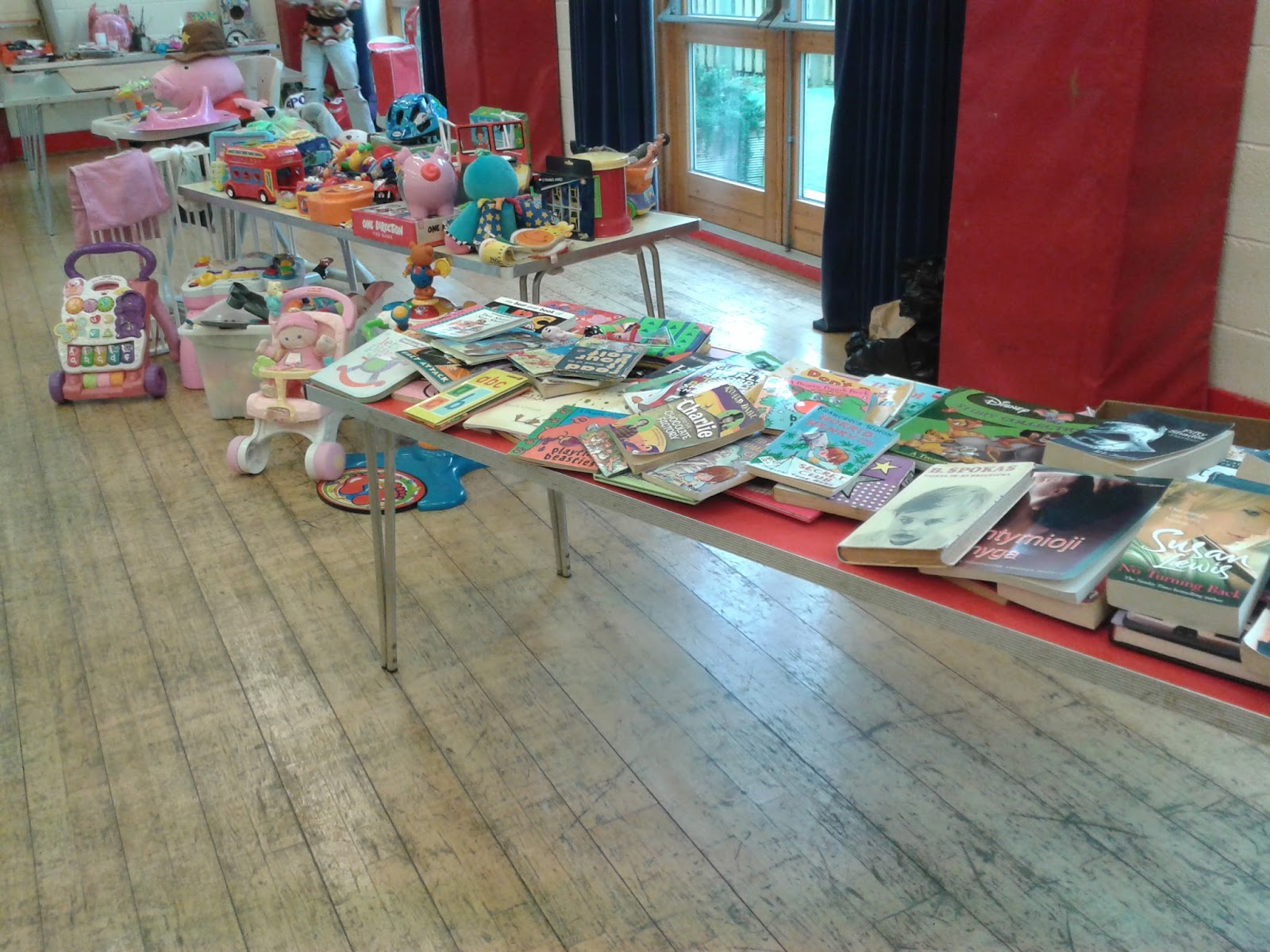 On the day we actually did a toy, DVD, book, clothes and food swap. We had several tables out – one for each type of thing and a clothes rail. We let people bring and take whatever they wanted. I knew from my experience of hosting a clothes swap (read more here) that often people tend to bring more than they take. Any leftovers were taken by Emmaus and Hangleton Food Bank. The community centre had some stuff to start off with which filled the tables up before people arrived. I managed to get rid of a few bits and pieces too!