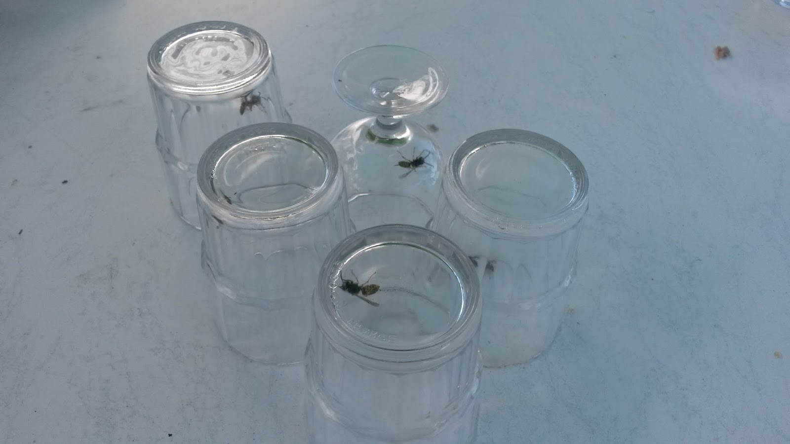 That’s all well and good isn’t it, but you still don’t want them buzzing around your food while you are trying to eat it. There are lots of ways to deal with this problem, some better or worse for the wasp and the environment. This method tries to minimise the impact on both and won’t cost you a penny. Essentially all you need to do is trap the wasps that come along while you are eating in an upturned glass and then carefully release them when you are done. It makes it easier if you put a bit of bait on the table or picnic rug for them to land on and if you are feeling kind you could even leave it in there with them. To minimise harm to the wasps make sure they are not left in direct sunlight and they are released as soon as you have finished eating,
